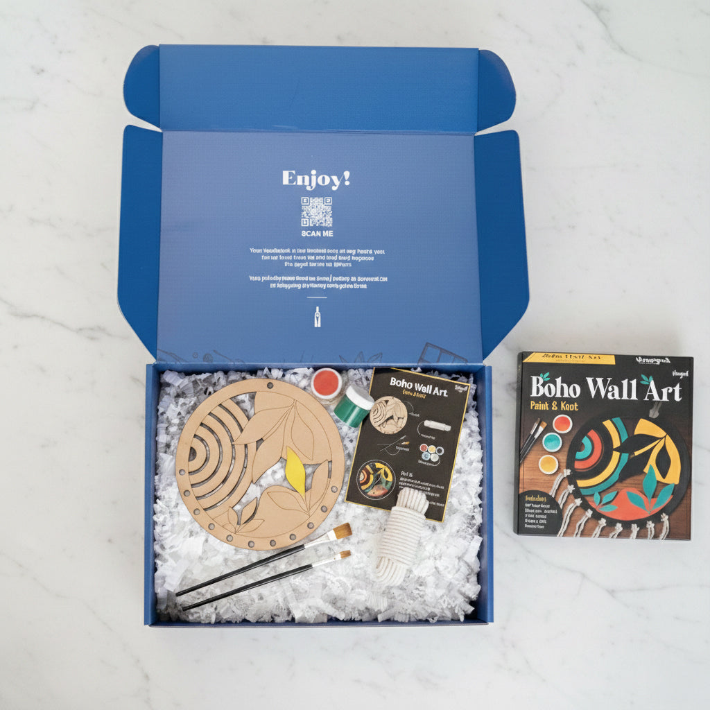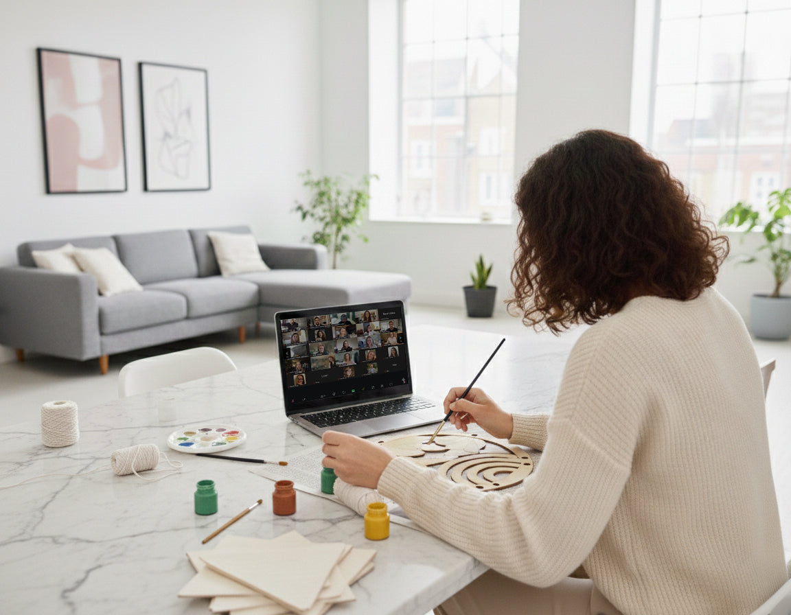 Spark creativity and conversation with a virtual paint and macrame workshop your group can enjoy from anywhere. Each participant receives a complete DIY kit and joins a live guided session to create a stylish boho wall piece. Perfect for outreach events, client appreciation, and remote team bonding.
