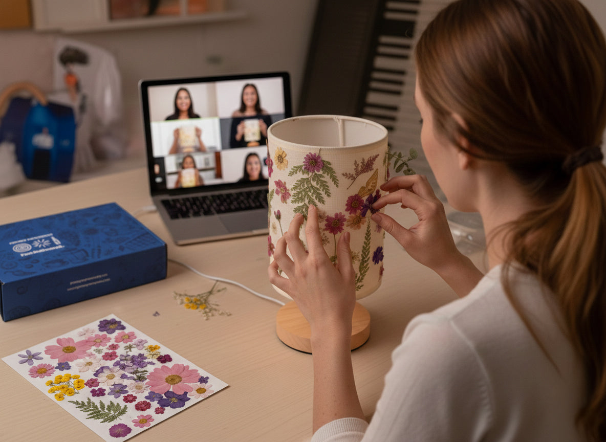 A calming, hands-on virtual experience where participants create a unique decorative piece using real dried flowers. Guided live by an expert host, guests design their own floral lantern, choosing the format that best fits their style and space.