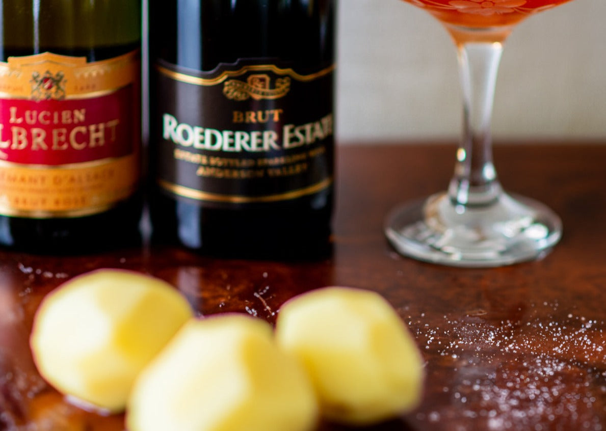 Step into a world of effervescence and indulgence with our Fizz & Fries- Sparkling Wine & French Fry Experience. This virtual tasting adventure pairs the sparkle of fine wines with the comfort of gourmet French fries. Each kit features a selection of exquisite sparkling wines, carefully chosen to complement the season or availability.Â