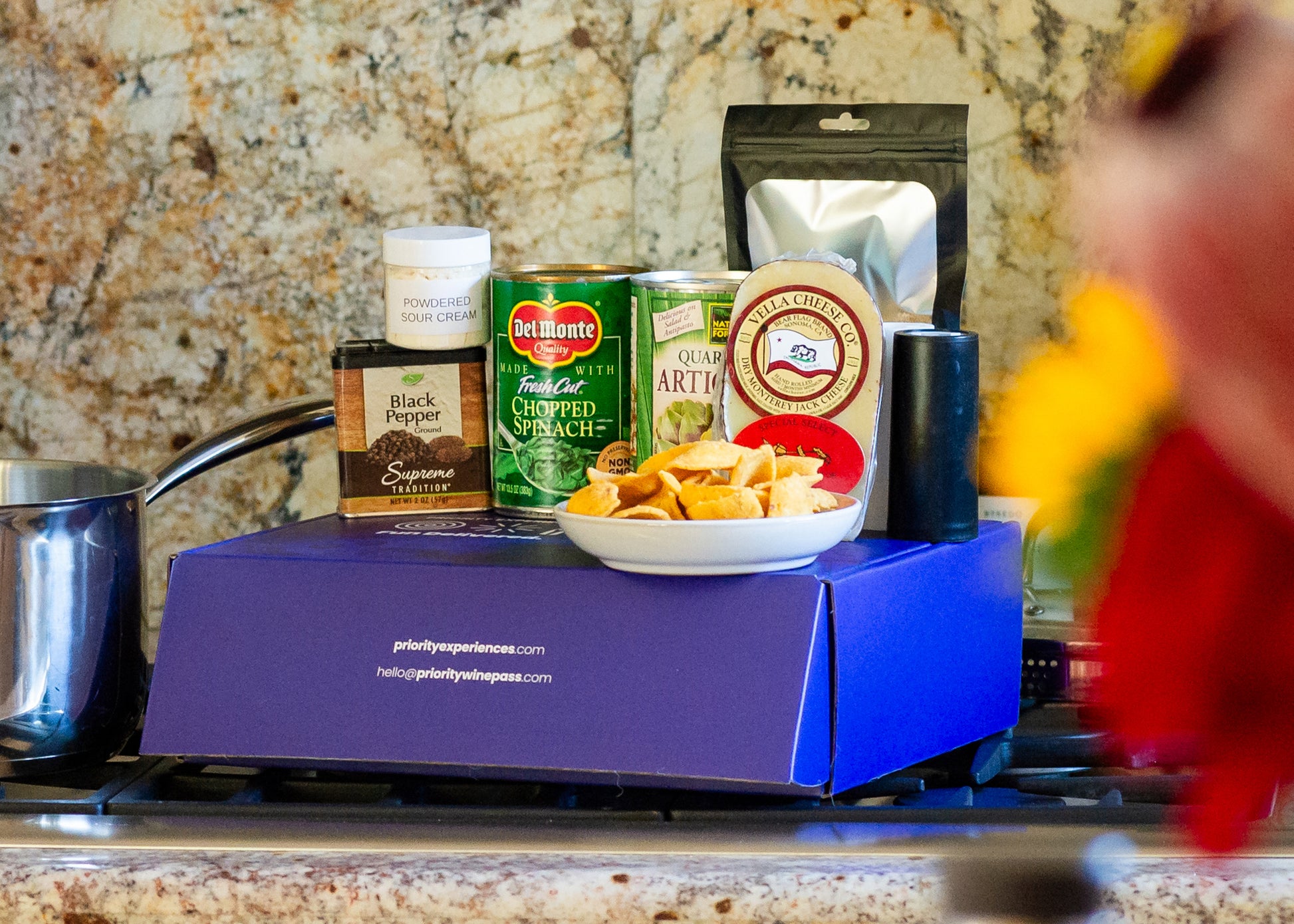 Each kit includes all the premium ingredients you’ll need to make the Classic Artichoke Dip.  Enhance the experience with a pairing option! Add two beers starting at $25 or a half-bottle of wine from $30 to perfectly complement the treats.