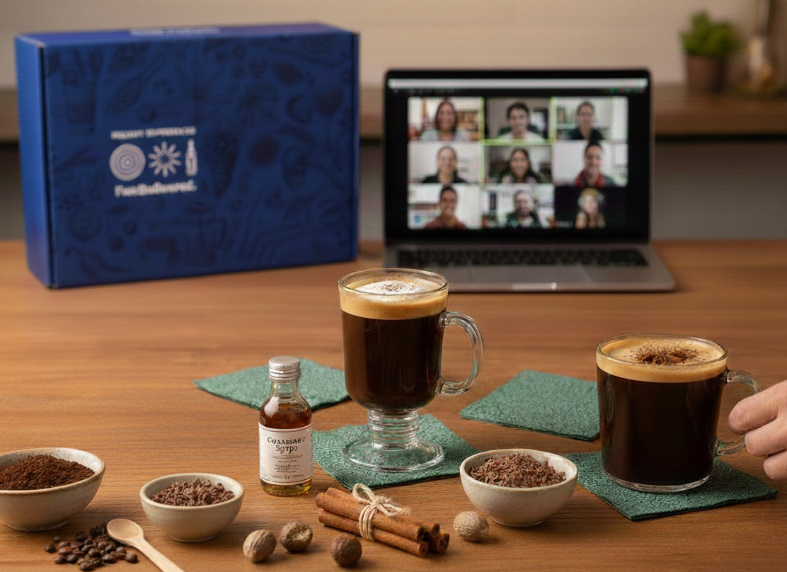 Bring the warmth and charm of an Irish pub straight to your guests with this interactive Irish Coffee and Whiskey tasting kit. Designed for guided virtual experiences or festive team events, this kit includes everything needed to craft multiple variations of classic Irish inspired drinks, from traditional hot cocktails to rich dessert style sips. Guests learn how small changes in ingredients create entirely new flavor profiles, making this both an educational and indulgent experience.